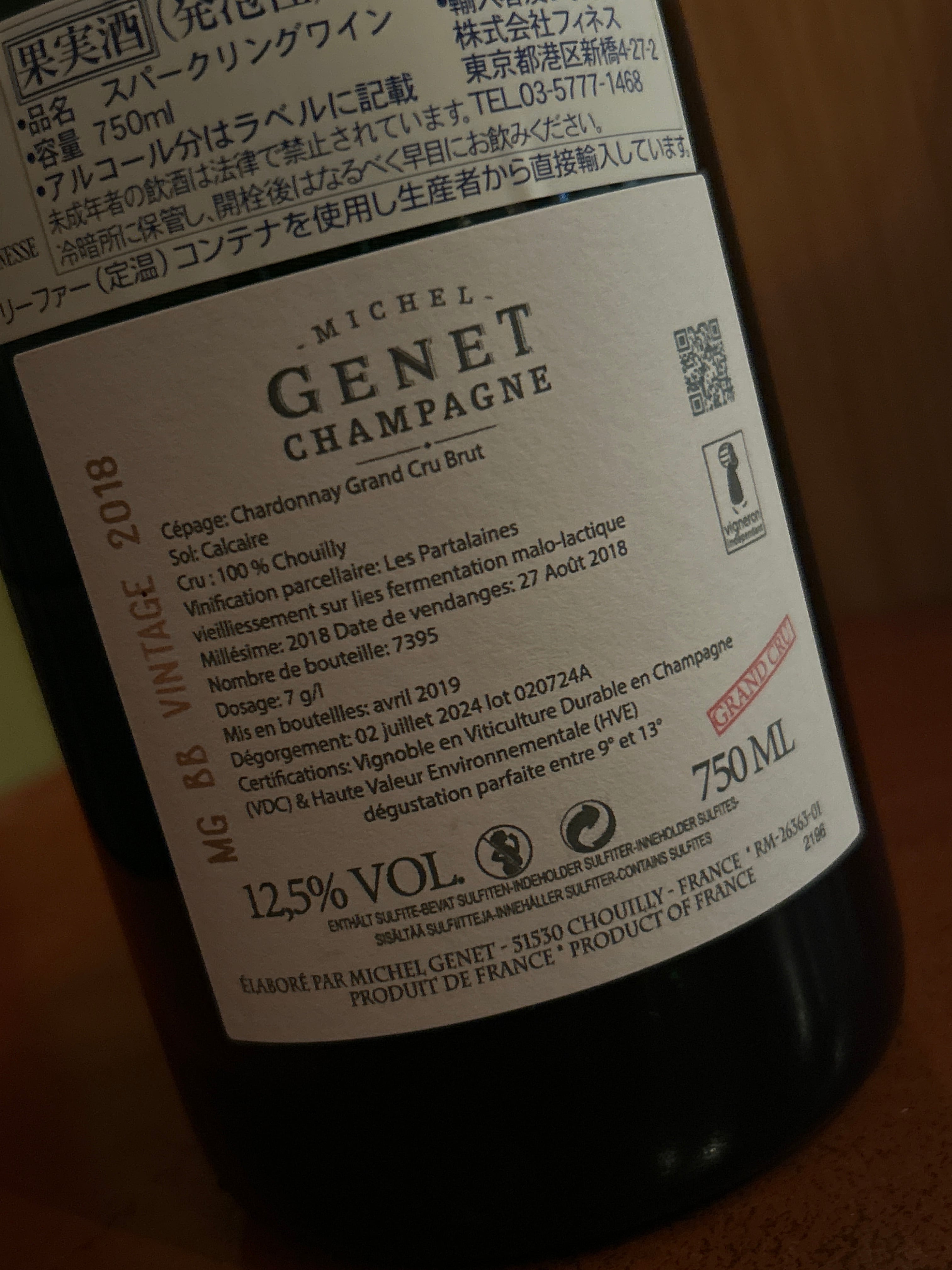 2018シャンパーニュMG BBヴィンテージ・グランクリュ(ミシェル・ジュネ)